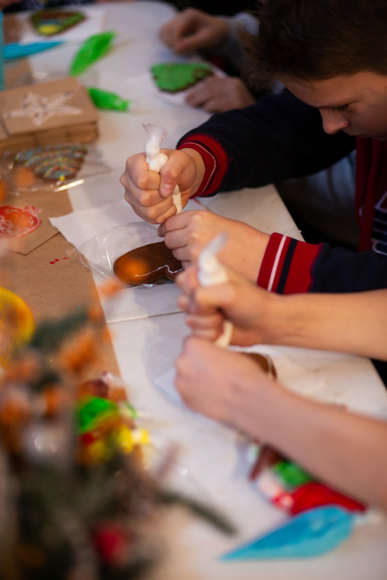 Мероприятие стало интересным не только для взрослых, но и для детей, которые с удовольствием приняли участие в развлекательной программе и творческих мастер-классах (создавали новогоднюю композицию, расписывали пряники, украшали гипсовые фигурки). Личики юных гостей аквагримеры украсили яркими узорами, а парикмахеры убрали волосы девочек в причудливые косички.